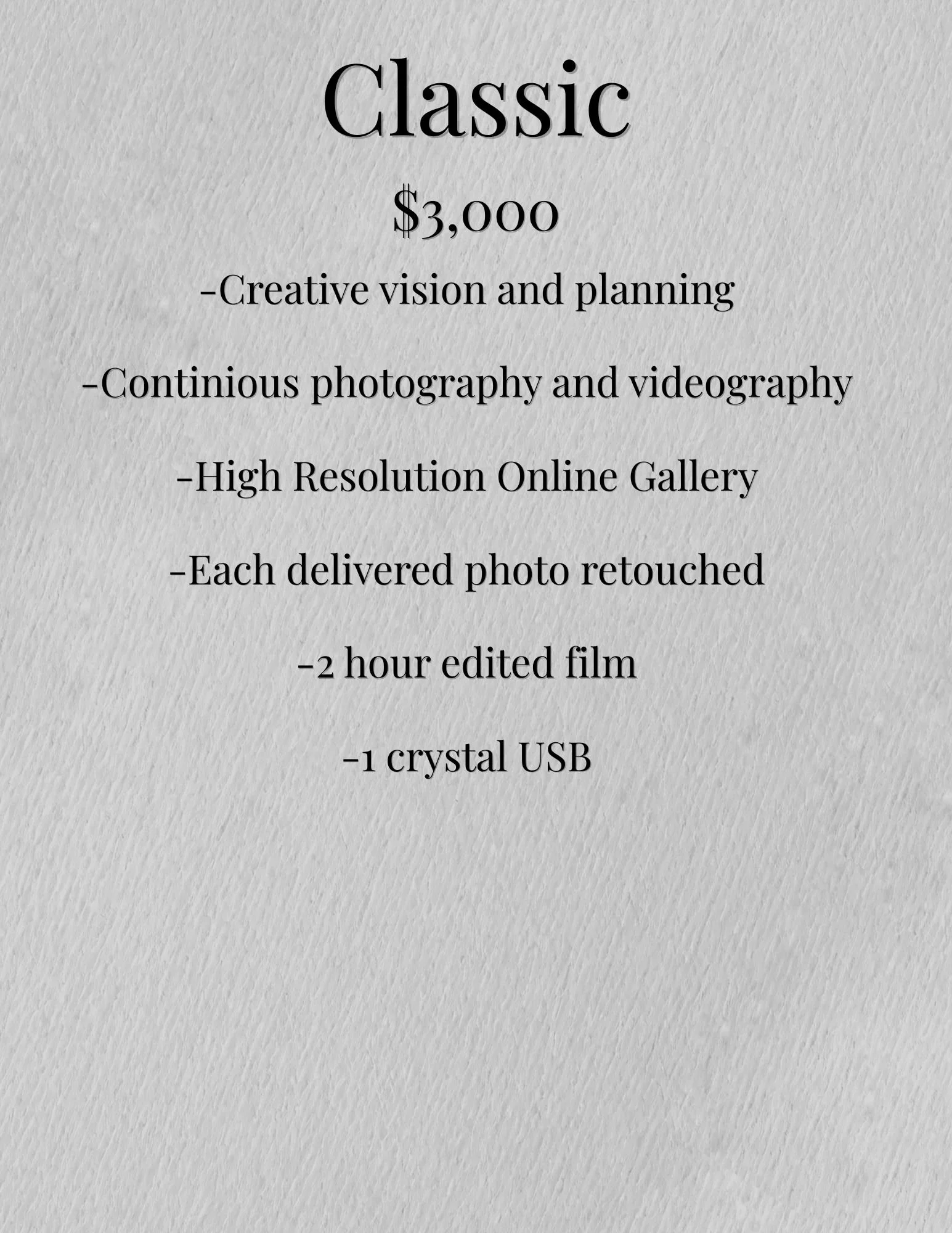 This package is ideal for couples or quinceañeras seeking comprehensive photo and video coverage, without the inclusion of a photo album, printed images, or a pre-event/engagement photoshoot.